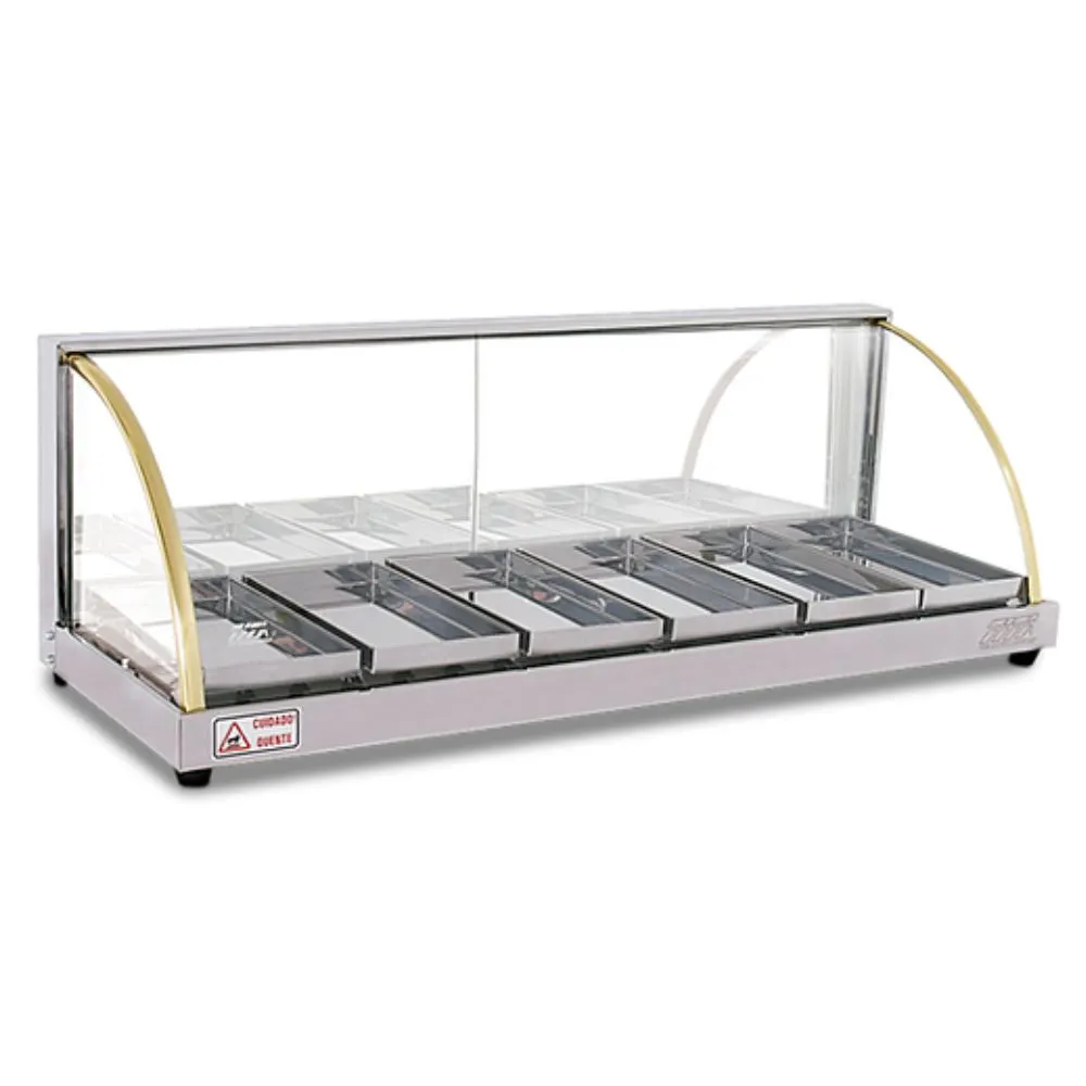 Perfeita para pequenos estabelecimentos como cafeterias, bares, lanchonetes e outros serviços de alimentação, a estufa da linha W conta com 6 bandejas, ótimo para exibir suas preparações de forma elegante. Seus pés antiderrapantes garantem estabilidade e segurança, permitindo o uso sem preocupações.