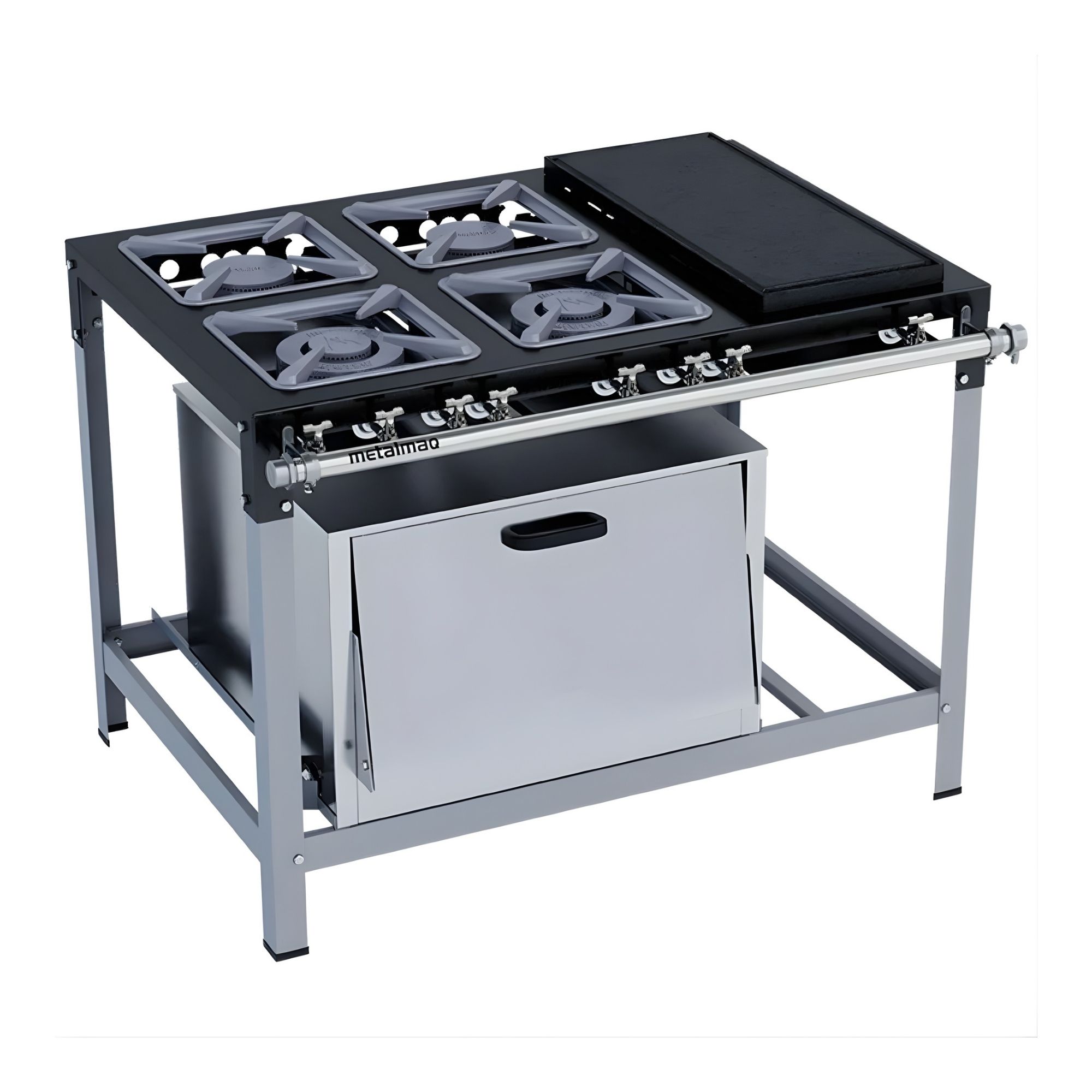 O Fogão Industrial de Chão 4 Bocas com Chapa e Forno M22 Stori Max Metalmaq foi desenvolvido para oferecer versatilidade, resistência e alto desempenho no preparo de alimentos em cozinhas profissionais. Ideal para restaurantes, lanchonetes, bares e cozinhas industriais, o equipamento permite preparar diferentes receitas ao mesmo tempo, utilizando as bocas, a chapa e o forno com praticidade e eficiência.