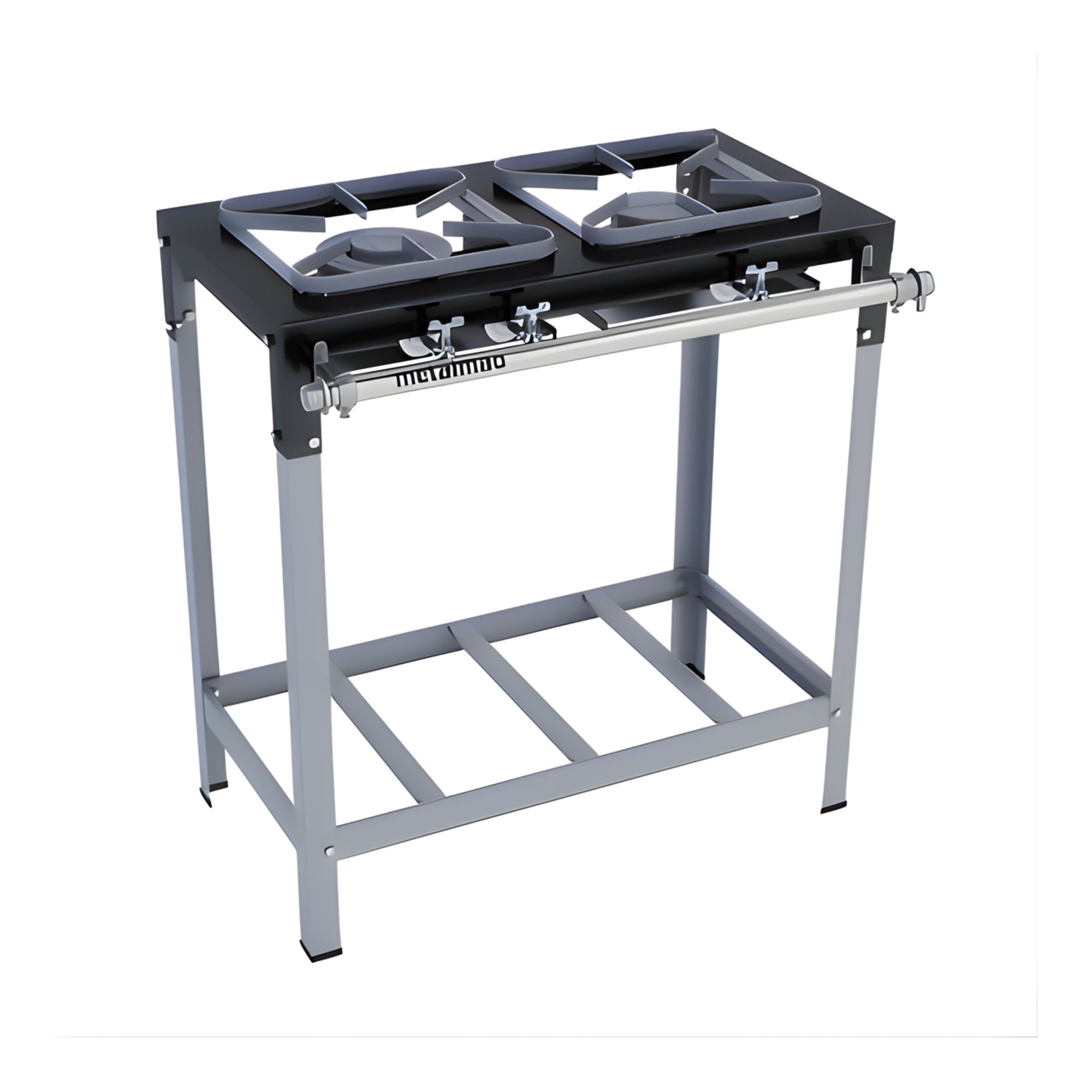 O equipamento também conta com registro regulador de gás e tubo distribuidor confeccionado em liga especial de alumínio polido de 3/4”, garantindo melhor condução do gás. Seu design modulável e desmontável facilita o transporte, manutenção e limpeza, tornando o fogão uma solução prática e funcional para cozinhas profissionais.