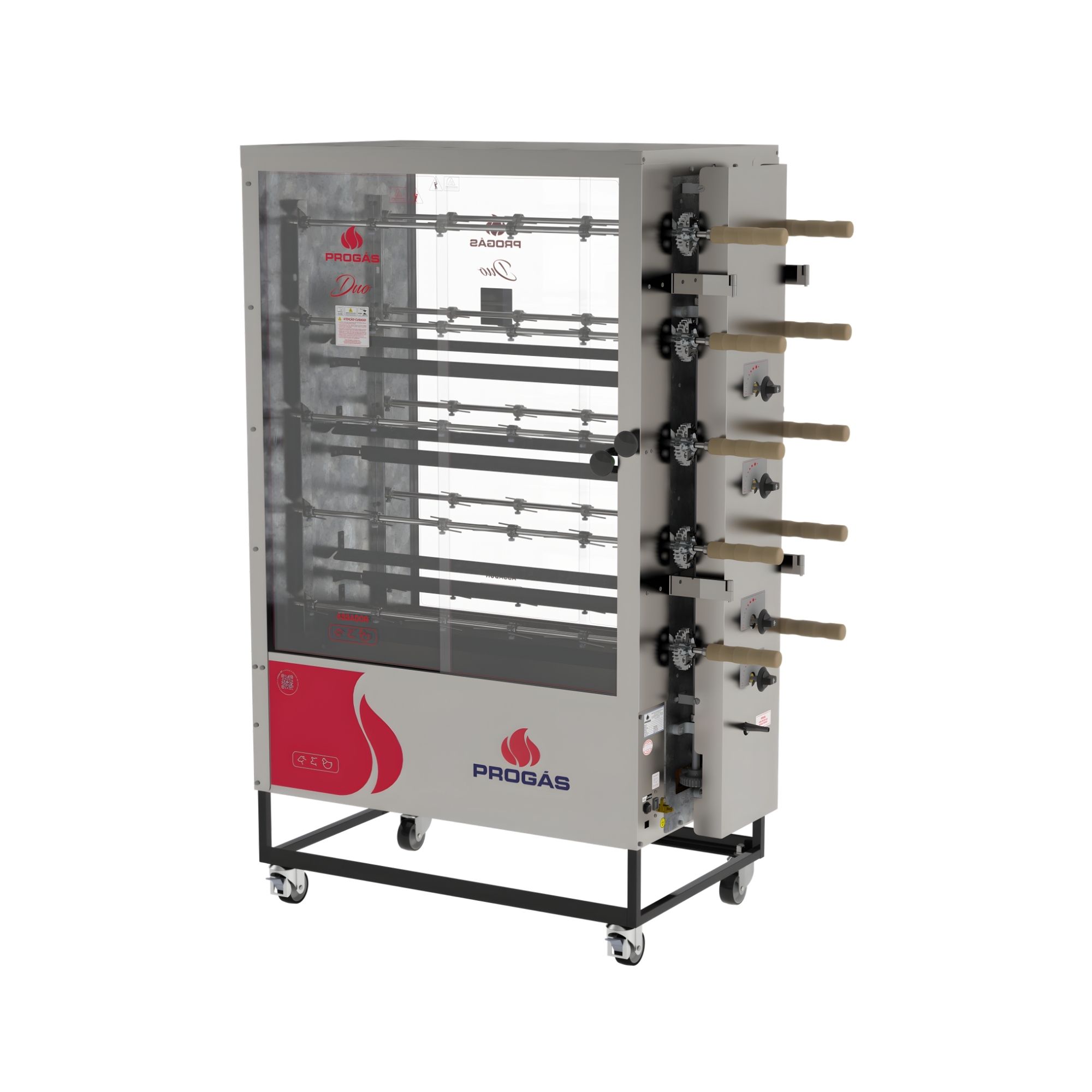 O Forno Assador de Frango Rotativo PR-6100 DUO Progás é um equipamento profissional desenvolvido para rotisserias, restaurantes, supermercados, açougues, padarias, churrascarias, lanchonetes e estabelecimentos que trabalham com grande volume de carnes assadas e frango assado. Ideal para negócios que necessitam de alta capacidade de produção com qualidade e padronização no preparo.